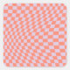 Retro Chequered pattern – lilac and orange twisted check / wavy and warped chequerboard.