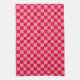 Retro Checkerboard Checkered Pattern Pink Orange Tea Towel