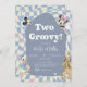 Retro checkerboard "Two Groovy" 2nd birthday Invitation