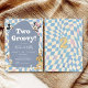 Get ready to party with your favorite invitation ! Celebrate your little one turning two with this super trendy "Two Groovy!" birthday invitation set. This whimsical design features peaking out from a cool, curvy frame. The background has a fun, retro blue and yellow checkerboard pattern that perfectly captures the "groovy" theme.
