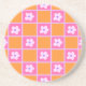Retro Chequerboard Pattern In Orange And Purple Coaster