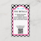 Retro diner wedding details card with QR code. Chequerboard background with pink, blue, black and white colour scheme. Great for a vintage 1950s look and feel.