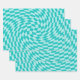 Wrapping paper featuring an aqua blue, twisted chequerboard pattern.
