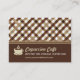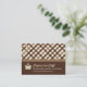 A chequered pattern in shades of brown, cream and mahogany give a retro feel to this customer loyalty business card great for any coffee business. The pattern makes up the top part of the business card on the front with a rich brown panel below displaying a graphic coffee cup next to the name of the business, a tagline or description and a website or other text. The reverse shows a grid of coffee icons to stamp for a customer to receive a free or discounted coffee or other beverage. Contact information goes in the brown panel below. Great customer loyalty reward card for a coffee bar, restaurant, coffee shop or diner. Available with matching products.
