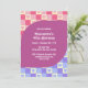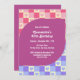 Retro Chequered Heart Bauhaus Purple Blue Birthday Invitation