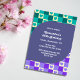 Retro Chequered Heart Bauhaus Teal Blue Birthday Invitation