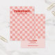 This jewellery display card features a pink chequered background and a contrasting red font. Add your company info and social media or website to the back side of the card.
