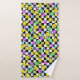 cute multicolored smiling emoji faces on chequered patterned bath towel set