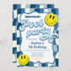 Retro chequered wave pool party birthday Invitation, Bruh you in? birthday Invite, Chequered Smile Face Pool Party Birthday