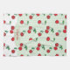 Retro Cherries Red White Green Modern Stripe Tea Towel