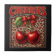 Retro Cherry Coquette Trendy Bow Design on Leopard Tile