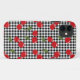 Retro design with red cherries on black and white gingham background. On home decor and gifts. PinkInkArt original!