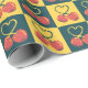 Retro Cherry Heart Shaped Stems Teal Mustard Check Wrapping Paper