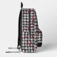 This personalised backpack has a retro chess board pattern with chess pieces and an atomic symbols chess board. Personalise with your name. A great chess pattern perfect for any mid century modern lover or chess lover. You can make the chess pattern larger or smaller on the backpack. Or take off the colour blocking and name for bulk order for a small store order.