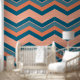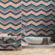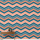 A bold, graphic design with colourful shades of peach and blue -- with a fun colour block to add your name or any text. A stripe pattern with punches of colour.