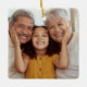 Retro Chic 70s Pink and Gold Floral Family Photo Ceramic Ornament