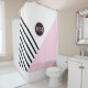 Redecorate your bathroom with a designer look using this personalised contemporary pop art geometric pattern with a retro chic vibe. This stylish designer shower curtain has angled black stripes and pink colour block positioned in an envelope style with a prominent matching round frame surrounding your monogram. Personalise with your desired monogram for a custom look that is uniquely you. Other matching bathroom and bedroom decor products are available in this design for a coordinated look.