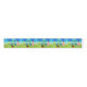 When life hands you lemons, it's time to buy this Retro Children's Lemonade Stand Ribbon. This nostalgic, 1960's style, minimalist art design features a wonderfully kitschy side of suburbia, where picket fences are plentiful and children are budding business entrepreneurs. The scene looks like it's straight out of a classic television show, with a young girl learning the value of a dollar while operating her vintage lemonade stand. The girl is wearing a blue dress, with a light blue pinafore. Her dark hair is pulled back in a bouncy ponytail. The stand itself was masterfully crafted by a master craftsman. It is painted in shades of teal, with a giant, yellow lemon proudly proclaiming the bargain price of $0.25! On the counter, there is a full pitcher of tangy, liquid refreshment. Our business girl is enjoying the fruits of her mother's labour, by sipping on a tall glass of lemonade. To the side, Mum is approaching, carrying another pitcher of freshly squeezed lemonade. She is wearing a bright, pink dress, with a yellow apron tied around her waist. It looks as if business is booming for the Princess of Lemonade. She appears to have made an easy sale to her father. Cha-ching! Standing on the lush green lawn, Dad is wearing green shorts and a yellow shirt that matches his wife's sunny disposition. He is standing behind a red lawnmower. We can see that he has already mowed a strip of grass, but, at this point, it's difficult to tell if he is working hard or hardly working. The mowing seems to be at a standstill while he enjoys a tangy glass of lemonade. Ah, refreshing! In the background, we can see mod, cartoon trees in shades of blue. They are perfectly backdropped by a sky in the shade of aqua reserved for Hometown, USA, in mid century modern artwork.