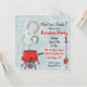 Retro fondue party invitation with a cool and modern feel. Bubbling and steaming pot of chocolate fondue and a skewer with a strawberry and dripping chocolate against a retro background. Great for all ages! Hand drawn illustration by McBooboo.