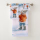This Christmas towel set showcases a digital watercolor design of a retro 1950s snowman with children playing in the snow. Available as a complete set or individual pieces, this adorable towel ensemble is perfect for any snowman enthusiast. AI art designed by Susang6