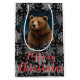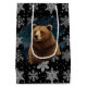 Retro Christmas bear midnight snowy landscape Medium Gift Bag