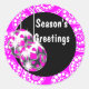 Festive, elegant and vibrant round stickers with the words, Season's Greetings surrounded by a white polka dot, retro pattern and two FAUX sparkling christmas balls which have a celtic knot pattern on them in bright pink and a silver grey. CUSTOMIZE IT - Personalise the wording and use them to decorate your paper products and presents this Xmas season. They are ideal for year end wishes to customers and clients too.