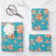 Retro Christmas Candy Cane Blue Wrapping Paper Sheet