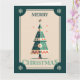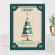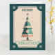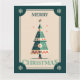 Vintage Christmas card featuring a geometric tree with colourful decorations and snowflake accents and Merry Christmas message. Perfect for holiday greetings or festive decoration.