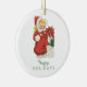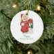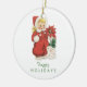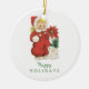 Retro Christmas Cute Girl Red Poinsettia Photo Ceramic Tree Decoration