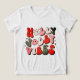 Retro Christmas Holly Jolly Vibes Trendy Holidays Girly Girl's T-Shirts features the text "Holly Jolly Vibes" in a retro script in red, green and pink accented with stars and cute happy faces. Designed by ©Evco Holidays www.zazzle.com/store/evcoholidays