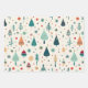 A lovely retro Christmas themed wrapping paper . A gorgeous minimal vintage patterned gift wrap of Christmas trees and snowflakes and Christmas baubles. All sheets in shades of blue red and gold. lovely designs for a perfect festive gift wrap with that will look great under any Christmas tree.