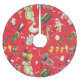 Beautiful old vintage Christmas wrapping paper from the 1950's era used to create an adorable tree skirt. Bright red background with all the toys kids would want to find under the tree on Christmas morning.
