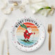Retro Christmas Sunset Skiing Santa Personalised Paper Plate