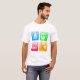 Colourful set of four Christmas icons featuring a blue Christmas tree, green snowman, pink candle and orange bauble decoration. Image available on various gifts and products.