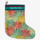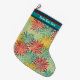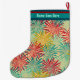 The original design on this happy looking Christmas Stocking portrays a blizzard of flower like Pompoms made of tinsel, and using a tropical colour palette of turquoise, sea-foam, deep yellow & scarlet red that spread from Cuba to South Florida & to the rest of the USA during the 1950's to early 1960's. Topped w/ dark & medium teal borders & a scarlet band, you can personalise the text w/the intended recipient's name & also choose fabric type, size, & 1 or 2 sided printing.