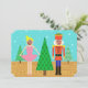 The toys have come to life on this Retro Christmas Toy Parade Photo Card! The minimalist design features a graceful ballerina and a colourful nutcracker standing on a wood grain stage. A green Christmas tree with a brighter green geometric design separates the two toys. Behind the playful duo, we can see two more Christmas trees—one is green with white polka dots and the other has a green and white chevron pattern. The backdrop is turquoise with light blue snow falling. The ballerina is wearing a pink tutu and toe shoes. Her blonde hair is in a classic bun. The mighty nutcracker is wearing a red and gold jacket with black accents and a wide black belt. He even has an impressive hat to match! His royal blue pants are tucked into high black boots. (The better for marching, my dear!) The faces of the pair are ready for your photos! That’s right! You don’t need a professional photo, or even a photo with both subjects together. With this delightfully whimsical design, you can choose the best headshot of two people, replace the template photos, and… Voila! You’ve got yourself a holiday photo card that will delight your friends and family! The opposite side of the card has a turquoise background with light blue balls of snow. Personalise with your special holiday message. This design is perfect for the young, the young at heart, and the just plain quirky! Photography © Storytree Studios, Stanford, CA