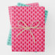Retro colours and patterns for Christmas with red tress on pink and green on green/red on red snowflakes.