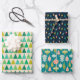 The perfect wrapping paper design trio for all of your holiday gifts. Go bright and cheerful this year with colourful designs featuring funky triangular Christmas trees, colourful holiday lights and retro tree ornaments. Give your Christmas gifts a little extra pizzaz this holiday season and make the outside look just as beautiful as what's inside.