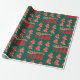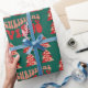 Fun and festive retro vibes wrapping paper with red, green and gold minimalist trees.
