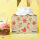 This retro christmas wrapping is made with hearts, presents, stockings, snowflakes, trees, candy canes and santa clauses.