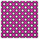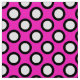 Retro dots with a contrasting border, based on a classic, Mid-Century Modern upholstery pattern - white dots bordered in black on a deep fuchsia pink background