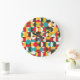 Retro Circles: Colourful Hipster Pattern. Large Clock