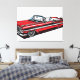 Bold pop-art / graphic style illustration of the side view of a retro vintage classic convertible car — red and white two-tone body, very long hood, chrome accents, dual round headlights, whitewall tires, open top and powerful 1950s luxury energy. Clean lines, vibrant colors and nostalgic vibe celebrate timeless mid-century classic automotive design and American elegance. Perfect classic car enthusiast wall art, retro garage decor, man cave poster, vintage vehicle lover statement piece or automotive nostalgia art for bedrooms, garages, offices, game rooms or retro spaces. High-quality print with razor-sharp detail and striking color pop.
