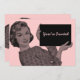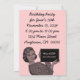 Invitations featuring a vintage illustration of a 1950s woman holding a clipboard. Customise them with your own text and background colour. Retro cool!