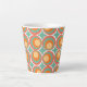 This mug has a mid-century modern design of concentric circles in 1970s colours with stars between each group.