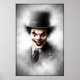 • A vintage-styled clown strikes a sinister pose in a foggy photo studio.