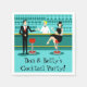 Every hour is happy hour with these Customisable Retro Cocktail Lounge Paper Napkins. The mid century modern design features a vibrant, 1960's style, minimalist, cartoon drawing of a classy, cocktail bar. Against the backdrop of an aqua wall, we can see rows of drink glasses. At least we can see the teal silhouettes of drink glasses. Judging from the shapes of the stemware, this bar is well equipped to wet your whistle, whatever your drink preference. A most competent and personable bartender is manning the teal bar with yellow accents. The young barkeep is wearing a pristine, white shirt with black bow tie. His fresh-faced good looks, blonde hair and black hipster glasses give us every reason to believe that he either spends his days as a struggling actor or a superhero. In one hand, the handsome mixologist is handing a martini to a customer on the opposite side of the bar. The waiting customer is a broad-shouldered gentleman in a black suit and red tie. He's the sort of fellow who is described as tall, dark, and handsome even when it's still hours until closing time. There seems to be a red and chrome bar stool with Mr. Debonair's name on it. Yet, not to be presumptuous, he asks the question, "Pardon me. Is this seat taken?" He is asking the raven haired gal on the neighbouring bar stool. She's a real "girl next door" type, if you happen to live next door to a flawless beauty with a figure that won't quit. She is wearing a black dress and holding a martini in one hand. She's hoping that she and the approaching gentleman have more in common that their drink preference and choice of wardrobe colour. It looks like this evening just got interesting. Cheers to you! Personalise for your special occasion!