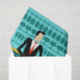 Every hour is happy hour with this Retro Cocktail Lounge Tissue Paper. The mid century modern design features a vibrant, 1960's style, minimalist, cartoon drawing of a classy, cocktail bar. Against the backdrop of an aqua wall, we can see rows of drink glasses. At least we can see the teal silhouettes of drink glasses. Judging from the shapes of the stemware, this bar is well equipped to wet your whistle, whatever your drink preference. A most competent and personable bartender is manning the teal bar with yellow accents. The young barkeep is wearing a pristine, white shirt with black bow tie. His fresh-faced good looks, blonde hair and black hipster glasses give us every reason to believe that he either spends his days as a struggling actor or a superhero. In one hand, the handsome mixologist is handing a martini to a customer on the opposite side of the bar. The waiting customer is a broad-shouldered gentleman in a black suit and red tie. He's the sort of fellow who is described as tall, dark, and handsome even when it's still hours until closing time. There seems to be a red and chrome bar stool with Mr. Debonair's name on it. Yet, not to be presumptuous, he asks the question, "Pardon me. Is this seat taken?" He is asking the raven haired gal on the neighbouring bar stool. She's a real "girl next door" type, if you happen to live next door to a flawless beauty with a figure that won't quit. She is wearing a black dress and holding a martini in one hand. She's hoping that she and the approaching gentleman have more in common that their drink preference and choice of wardrobe colour. It looks like this evening just got interesting. Cheers to you!
