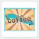 Retro Coffee Typography Teal Brown Sunburst Square Sticker