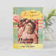 This charming retro birth announcement card for your baby girl highlights a custom photo, elegantly framed by a lively watercolor design featuring polka dots, stripes, and a delicate pink rose. The "It's a girl" text is a separate image file and can be deleted if you do not need it. The back shows a polka dot design or, if you like, you can replace it with another of your own photos.